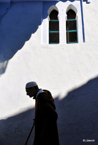 Así, en medio de olores sabrosos y de un color azul intenso voy descubriendo este rincón marroquí y su paisaje de ropa colgada en las ventanas; bazares llenos de productos coloridos que contrastan con la monotonía azul y blanca, las puertas de las casas muchas veces abiertas que te invitan a pasar; los chicos jugando con la pelota; las mujeres que van y vienen con sus panes; los hombres que descasan, juegan y toman su té de menta y los aguateros que reparten agua y al final, el camino inevitablemente nos lleva a la plaza principal Uta el-Hammam, donde se encuentra la mezquita con su torre octogonal y la kashba, con sus paredes color rojizo.